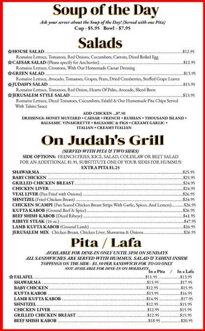 Judah Mediterranean Grille Menu